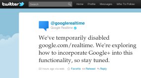 Google mematikan fungsi hasil pencarian real time untuk sementara waktu. Keputusan ini berhubungan dengan kehadiran jejaring sosialnya yang baru diperkenalkan, Google+.